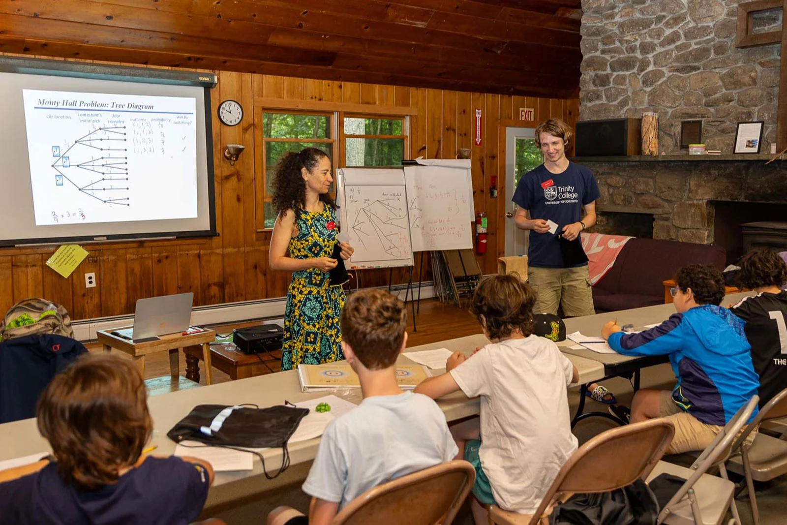 At SigmaCamp, students spend one week (August 10-17, 2024) with other talented campers exploring advanced math and science through our academic program and creating lasting memories with the other students through various non-academic activities. They are guided by graduate students and are taught by leading professors and scientists from top institutions such as MIT, Yale, Stony Brook University, Princeton, Stanford, and many other universities.